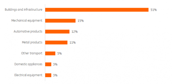 2022年全球鋼鐵使用量行業(yè)百分比: